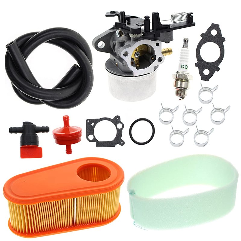 - Package list: 1x Carburetor, 2x Gasket, 1x O-Ring, 1x Air Filter, 1x Fuel Shut Off Valve, 1x Fuel Filter, 1x Fuel line, 1x Spark Plug, 6x Clamp