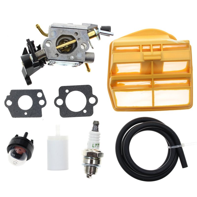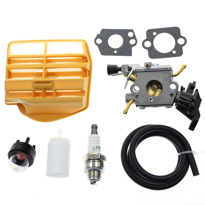 - Package list: 1x carburetor, 2x gasket, 1x air filter, 1x fuel filter, 1x primer bulb, 2 feet fuel line, 1x spark plug