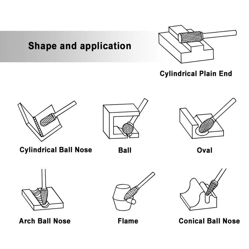 - Used with handheld electric or pneumatic tool drive,for Die Grinder, Dremmel Tool or Rotary Drill which can go along with 1/8" shank carbide burs.