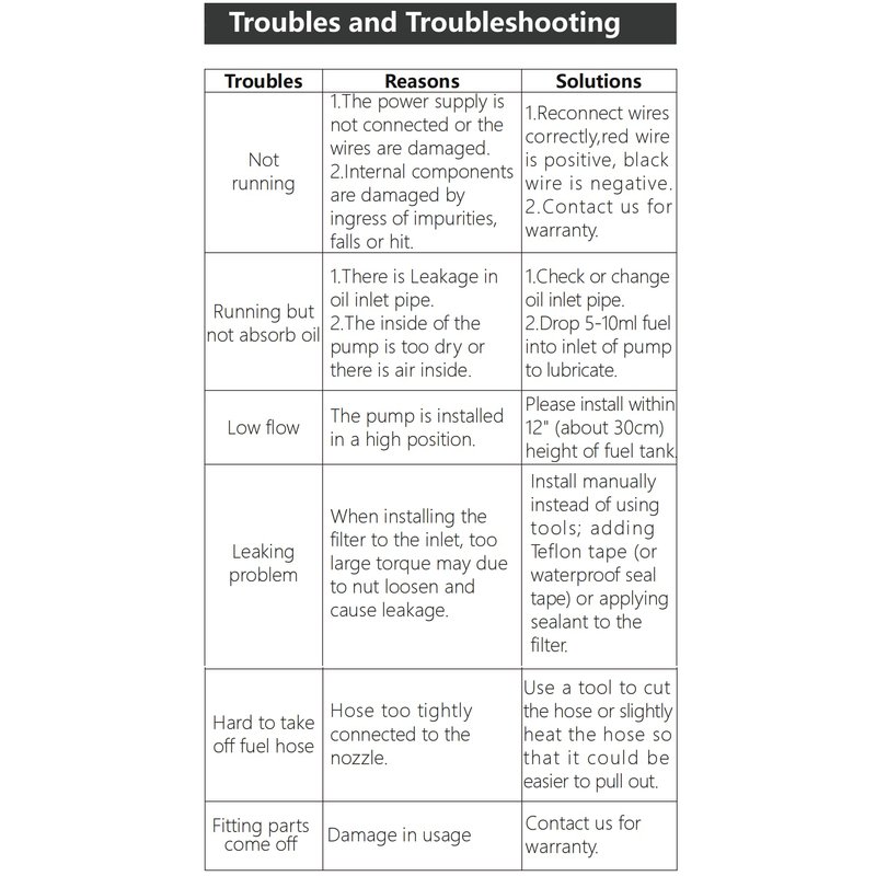 - IMPORTANT[Only fit for gasoline and diesel(without alcohol ) engine, and please be sure to use with filter, or it will affect the usage of fuel pump!!!]