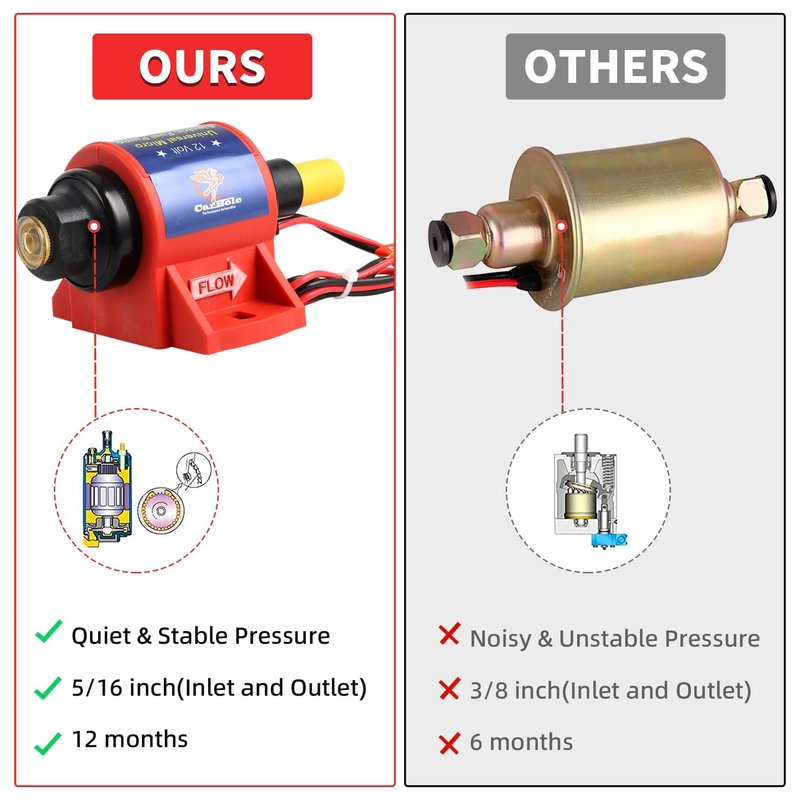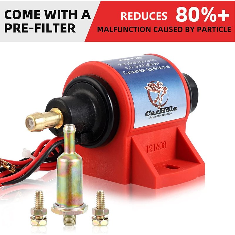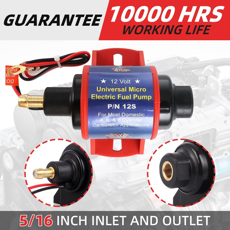 CarBole Micro Electric Gasoline Fuel Pump Universal 5/16 inch Inlet and Outlet 12V 1-2A 35GPH 4-7 P.S.I. Operating Fuel Pressure