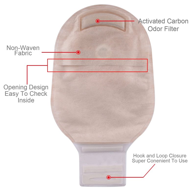 - Double-sided Non-woven Fabric --- Double soft and comfortable, effectively reduce friction.Can relieve the discomfort caused by wearing an ostomy bag.Split fabric design on front side makes it possible to check the content inside anytime.