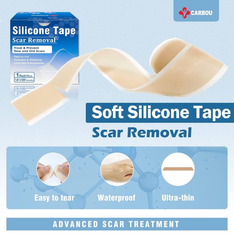 Carbou Medical Silicone Scar Tape (1.6"x 120"Roll), Soft Silicone Tape for Scars Treatment, Easy-Tear Silicone Scar Sheets , Professional Painless Scar Removal for Surgery, C-section, Acne, Keloid
