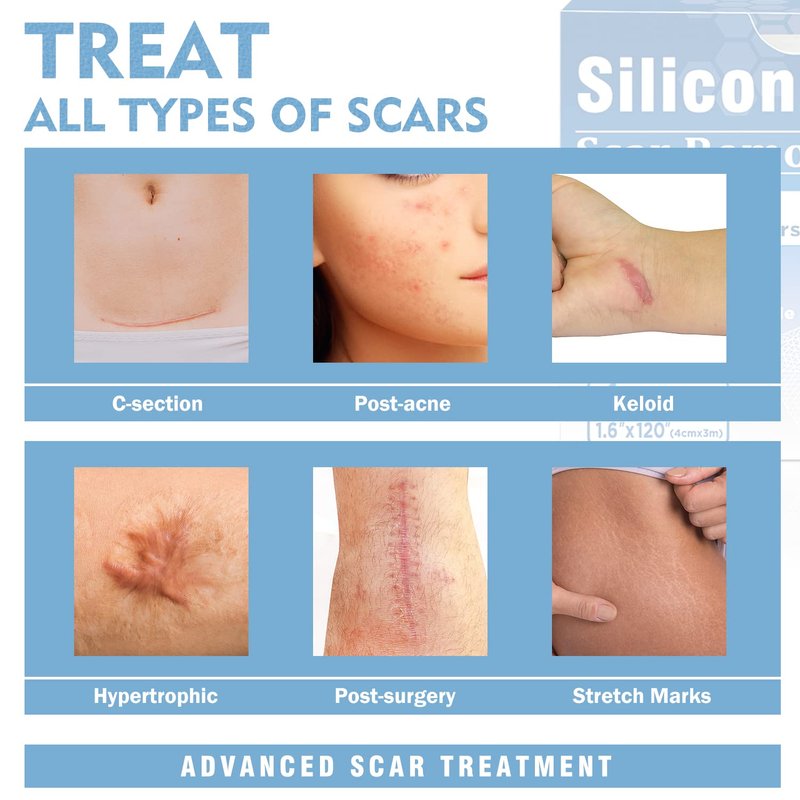 - Painless Removal of Scars: No need for surgery to remove scars. Made of advanced medical grade silicone. Silicone scar sheets can effectively remove and dilute old scars and prevent the formation of new scars. Does not irritate the skin.