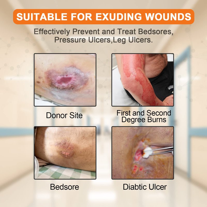 - 【Wide Range of Uses】- Suitable for post-operative wounds, bedsores, cysts, pressure sores, burns, leg venous ulcers, diabetic foot ulcers, trauma, I-II degree burns, and other minor trauma. Each piece of dressing adopts individual aseptic packaging, which is convenient to use and store.