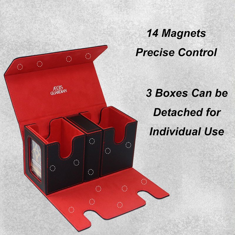 - High Capacity Storage: The AEGIS GUARDIAN commander card deck box is a spacious haven for your cherished MTG cards. It fits over 150 double-sleeved cards or 300 single-sleeved or 420 unsleeved cards, enabling a seamless organization of your extensive MTG collection