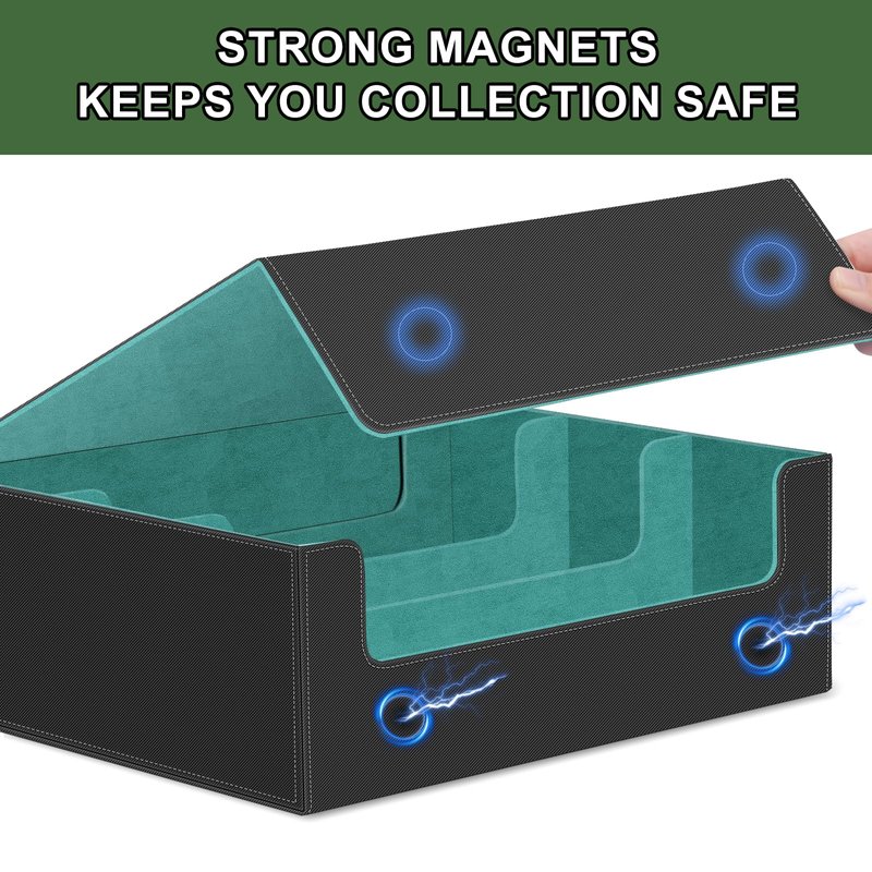 - Strong Magnetic Design: Our magnetic design is very powerful that it can keep the card deck case secure during transport. Even when fully loaded and turned upside down, the card holder case stays tightly closed at all times, no need to worry about losing your precious cards. And the double-sided opening design allows for easy to take your cards, even when the box is fully loaded.