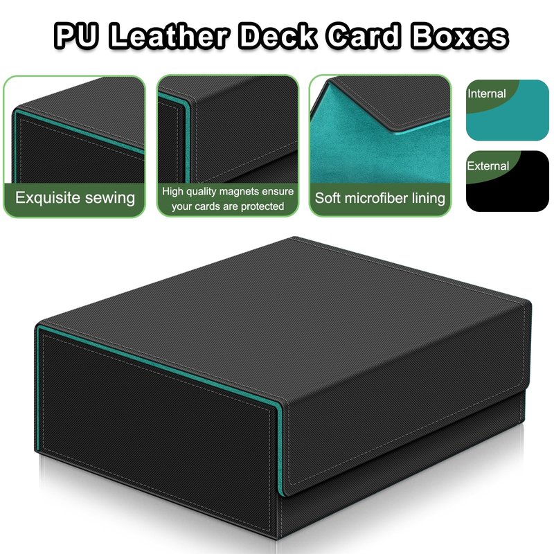 - Holds 1800+ Sleeved Cards: Compared with the traditional plastic card deck case, the durable PU leather card deck box gets an upgrade, and offers more room for your cards.The size of our deck card case is 11.45x9.85x4.2 inches, it's large enough to store 1800+ standard size trading game cards easily.