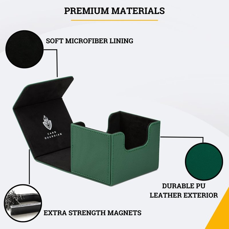 Card Guardian - Premium Deck Box (Green) for 100+ Cards for Trading Card Games Compatible with Magic the gathering (MTG), Commander Deck, Yugioh Deck Box, Pokemon TCG, Sports Card Storage Boxes