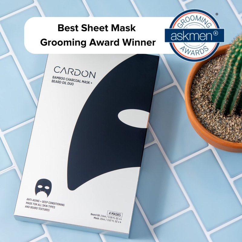 Cardon Face Mask for Bearded Men | Korean Sheet Mask for Men | Bamboo Charcoal Facial Mask and Beard Oil | 4-Pack