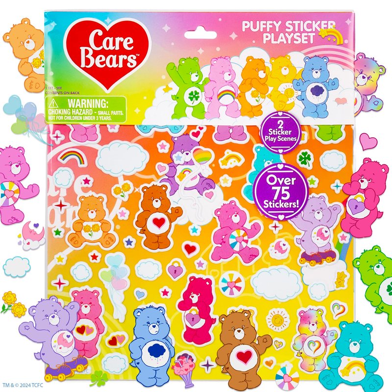 - OVER 75 REUSABLE CARE BEARS STICKERS: Play with over 75+ super-soft and squishy puffy stickers you can mix, match, remove, and reuse on 2 different play scenes!