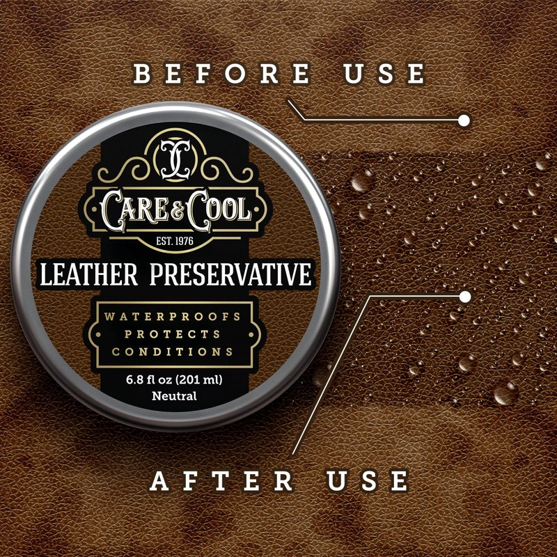 - RESTORES and CONDITIONS Care & Cool Leather Preservative’s special wax formula restores leather by penetrating right to its pores, delivering a hardy finish. A heavy-duty protection of leather’s natural oils gives it that beautiful, clean appearance you look for in new and used leather.