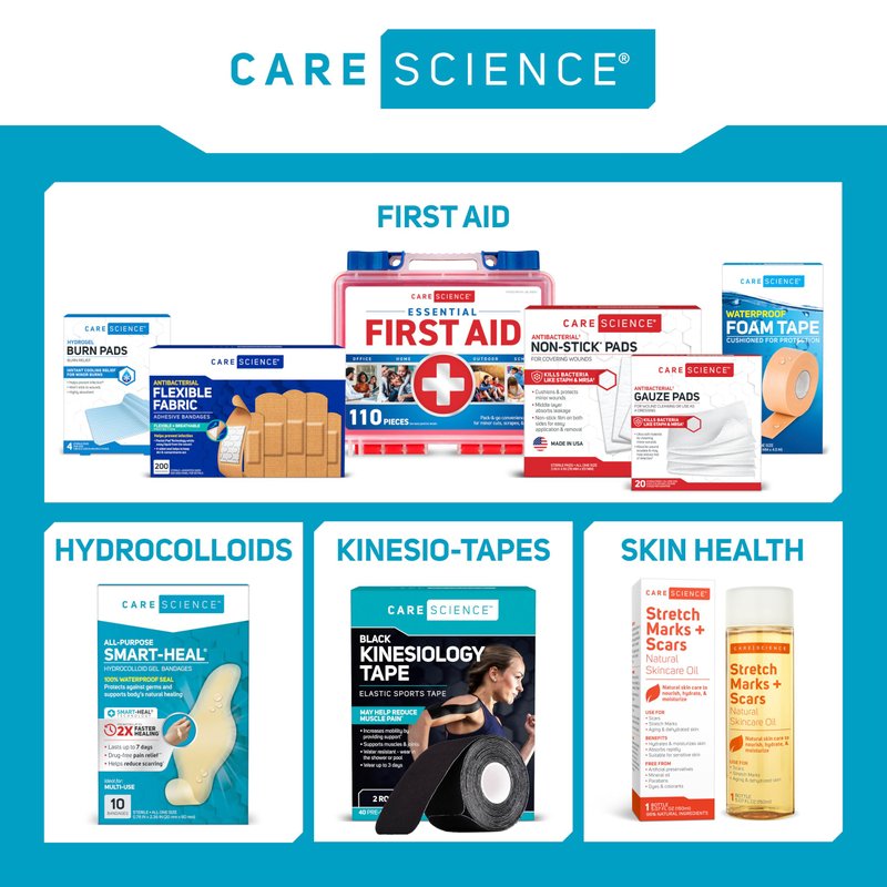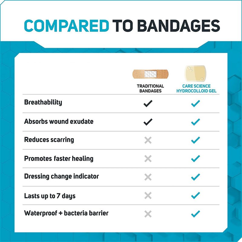 Care Science Hydrocolloid, Large, 2.3 in x 3 in, 4CT | 100% Waterproof Seal Promotes Faster Healing, Reduces Scarring