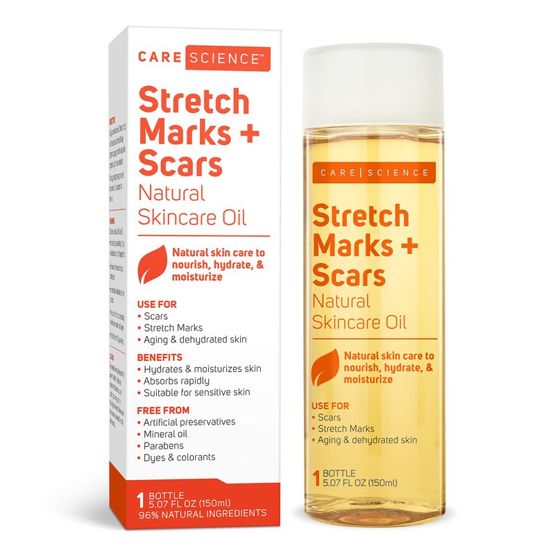 Care Science Stretch Marks + Scars Skin Care Body Oil, 5.07 Ounce | For Scars, Stretch Marks, Hair, Aging, & Dehydrated Skin | Natural Ingredients, Vitamin E Oil, Olive Oil, Coconut Oil, & More