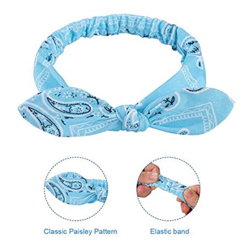 Carede 6 Pack Elastic Paisley Bandana Knot Headbands Rabbit Ear Bow Headband Turban Headwraps Hair Band for Women Girls