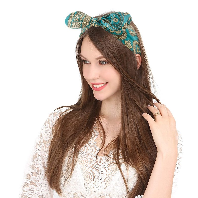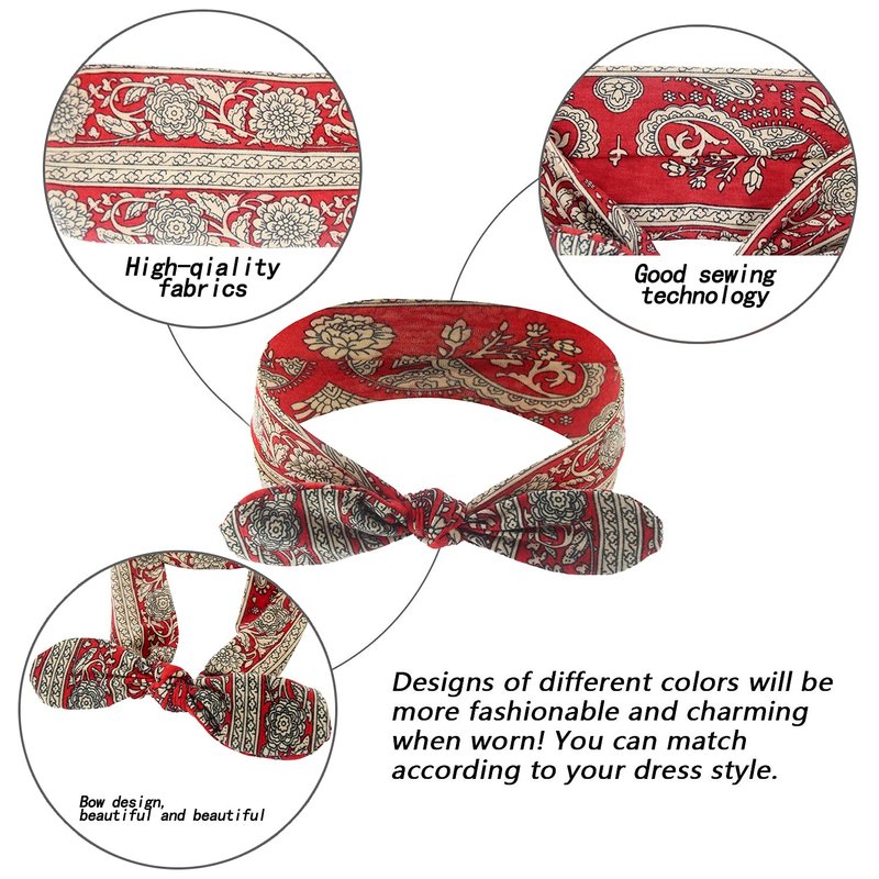 Carede Bandana Headband for Women Vintage Paisley Knot Headbands Bow Headband Elastic Cute Hair Band,Pack of 6