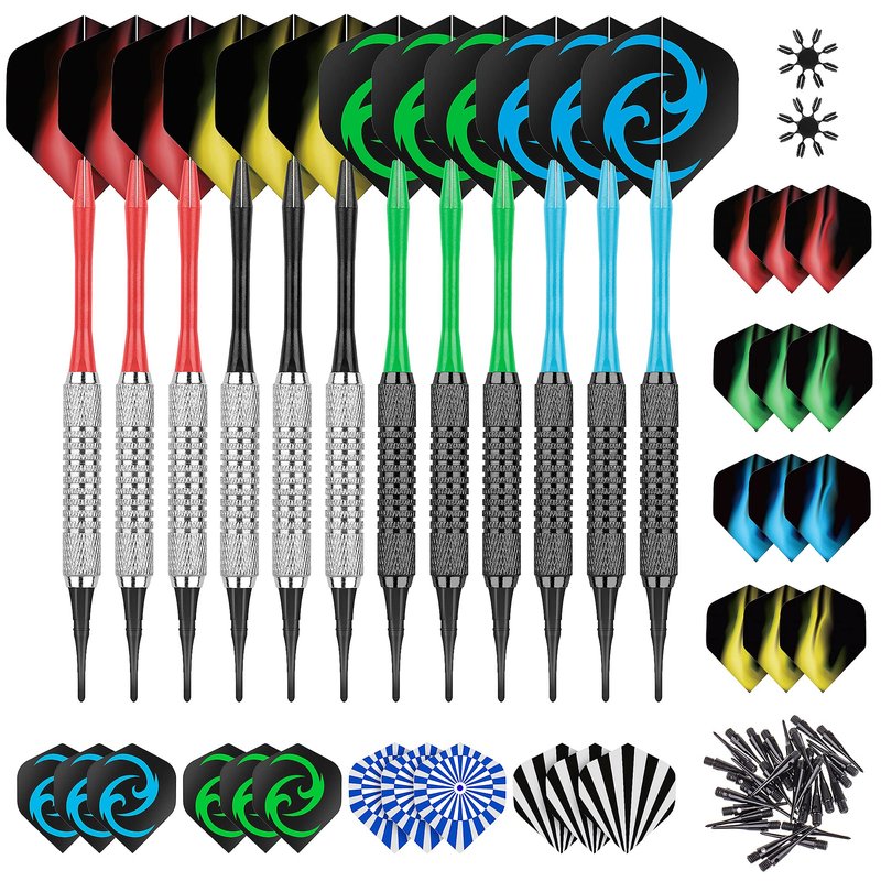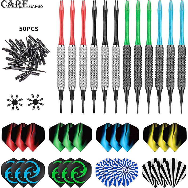CareGames Soft Darts Set 12Packs with 4 Colors Plastic Shafts,Extra Flights,Points and Flight Protectors