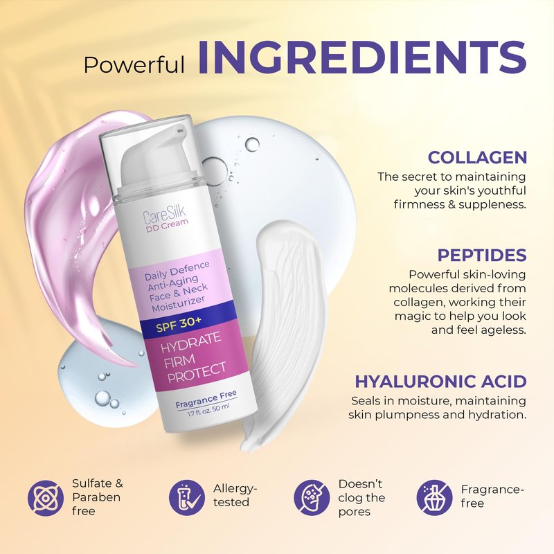 CARESILK Daily Defense Mineral Sunscreen Face Moisturizer With SPF 30 + Hyaluronic Acid, Collagen, Peptides | Sun Screen Face Lotion, Sunblock Face Sunscreen | Reef Safe Sunscreen