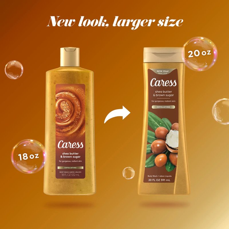 - Convert your shower into a sensorial escape with the sweet, rich fragrance of Caress Shea Butter & Brown Sugar Body Wash