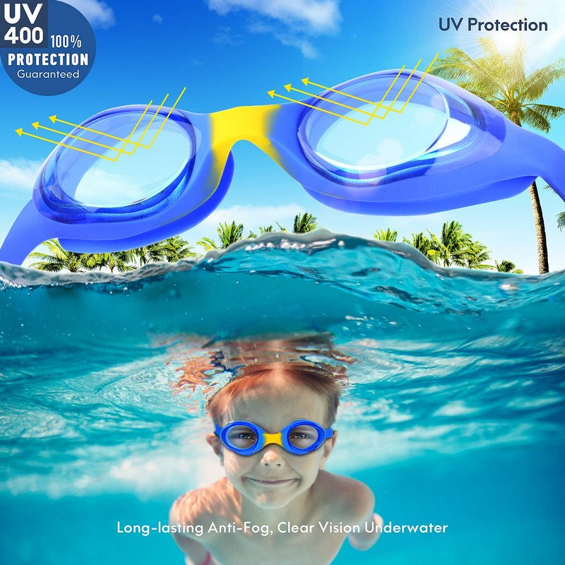 - No-Fog & UV Protection: The swim goggles is coated carefully with high-tech no-fogging on the inner surfaces of the lenses. And the outer surfaces of the lenses also well coated which enables to filter harmful rays and protect your eyes from heat and damage of the sun-rays. Also provide an optimal CLEAR VISION for kids!