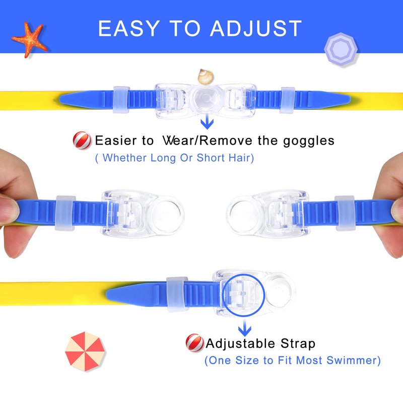 - Non-Slip Strap, Easy To Adjust Back Buckle, Especially For The Girls With Horsetail: Adopted soft smooth silicone material and separated strap design, which effectively hold the goggle straps in place. Prevent kids hair from being pulled by the straps. Enjoy a comfortable swim that doesn't involve constant interruptions for readjustment!