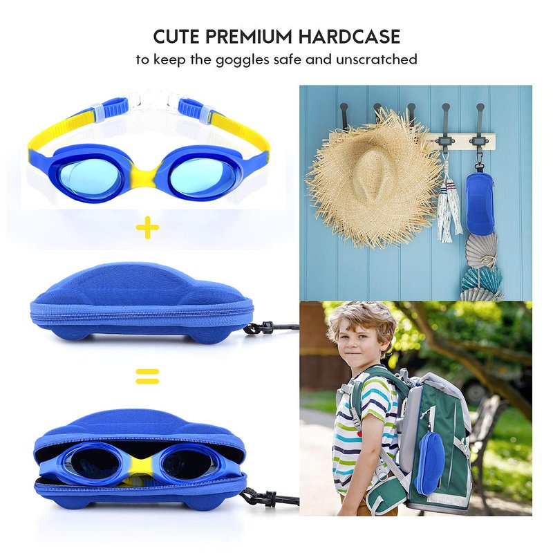 - Cute Car Case With A Hook: Our swimming goggles all packaged in a cartoon car case, a great surprise as a gift for your kids. Featured a hook will help you to carry and store easily.