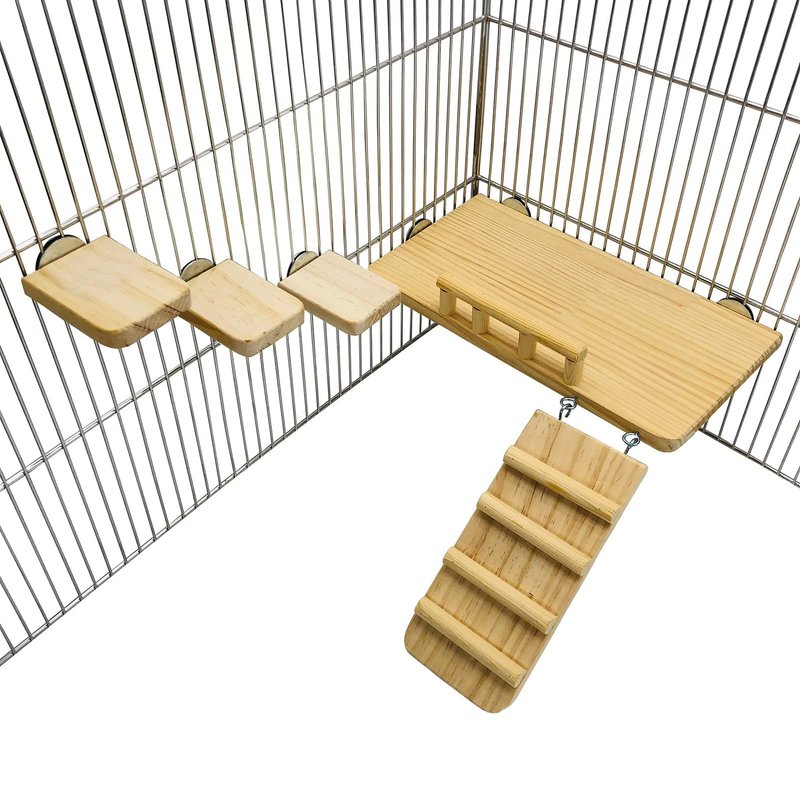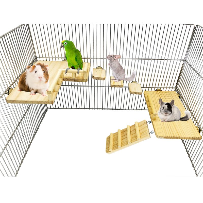 CAREUPET Wooden Platform with Ladder, Pet Activity Structure, Bird, Chinchilla, Guinea Pig, Hamster, Rat Cage Accessories