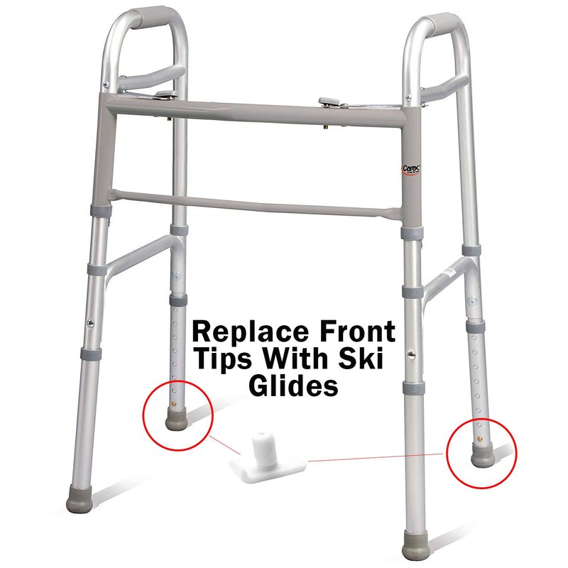 - Walker skis glides easily attach to any carex walker or any folding walker; remove the existing tips or walker feet in any walker and add these walker skids to help seniors gain their mobility back.