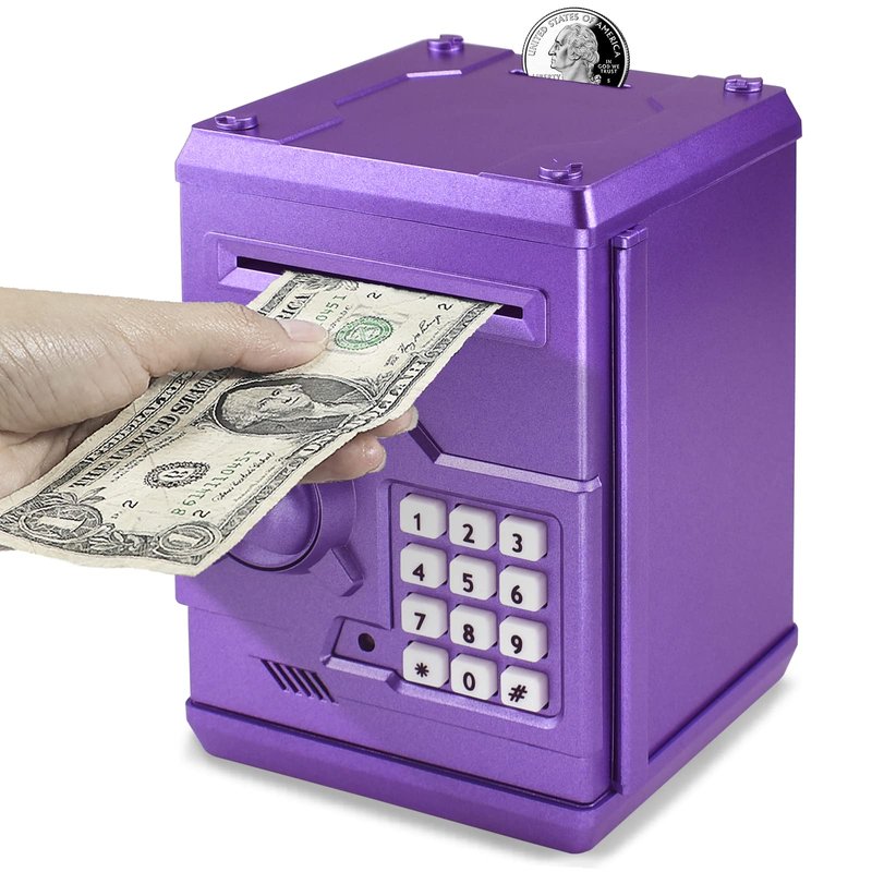- 【Best Gift for Kids】This piggy bank can help children save money in a planned way. It can Save Cash/Coins with Electronic Code.It can store about 600 pieces of Coins or 100 pieces of paper money.Most importantly,It can teach children to form a habit of Saving money from an early age. This is a toy that is very good for children's Physical and Mental growth.