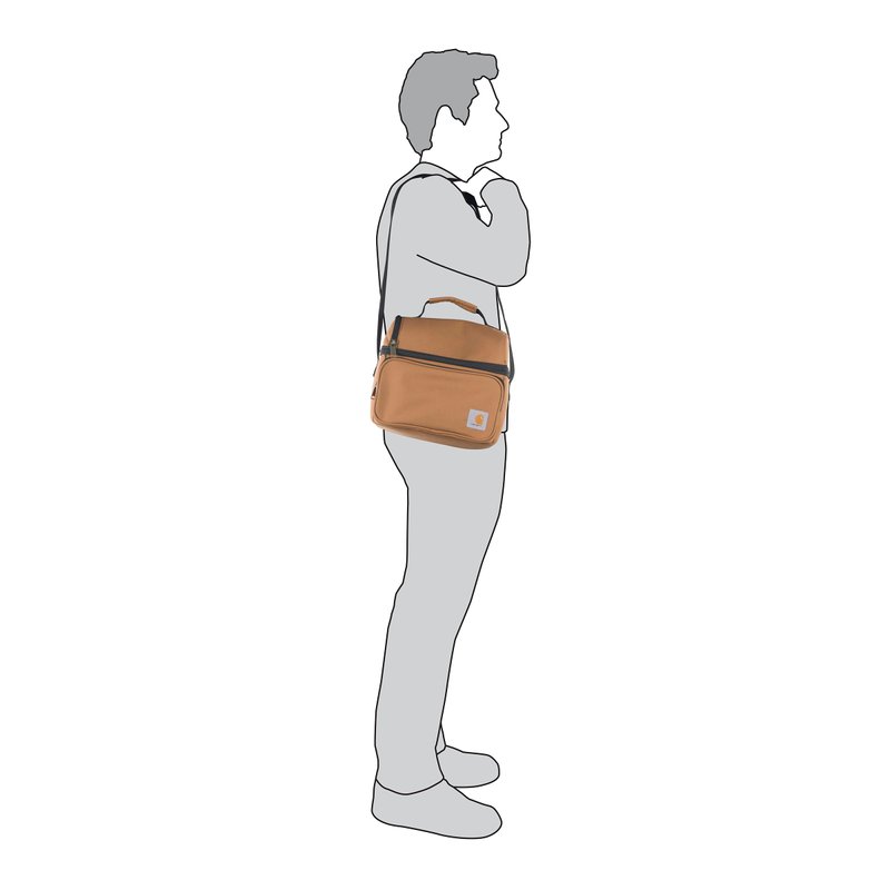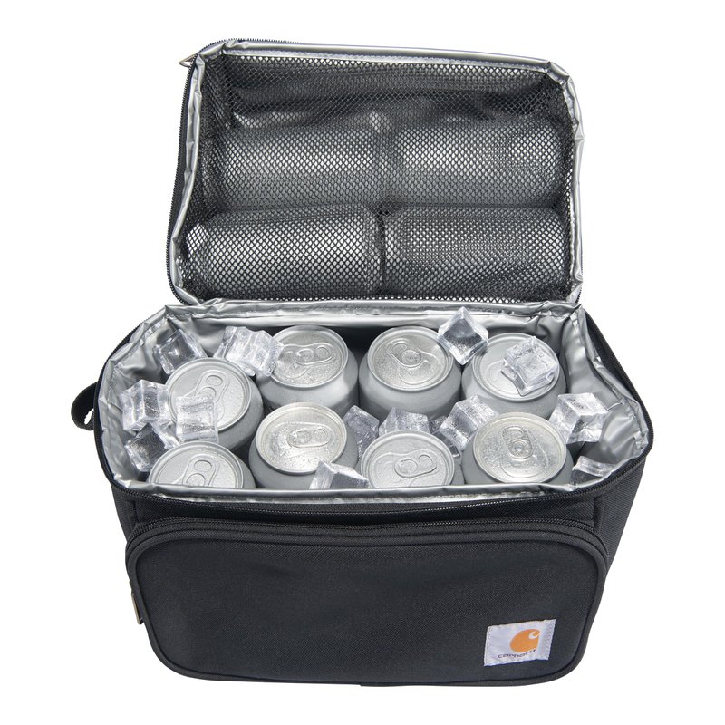 - Carhartt lunch cooler measures 10w x 9h x 7d inches; weighs 0.7 lbs.