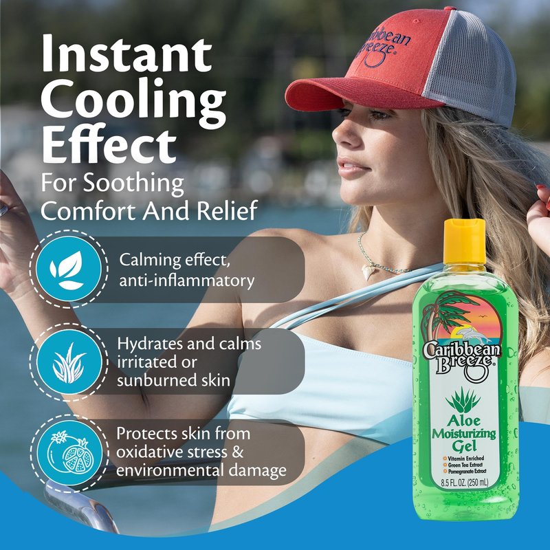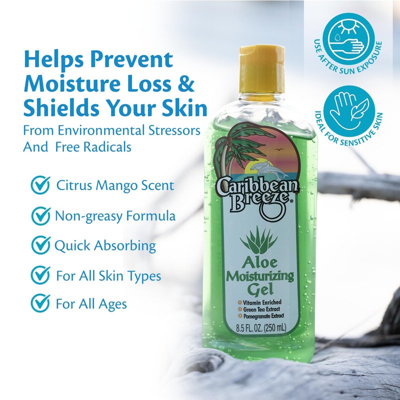 Caribbean Breeze Aloe Moisturizing Gel, Citrus Mango Aloe Vera Gel for Skin, Pure Aloe Vera Gel 100% Vitamin Enriched with Green Tea & Pomegranate, 8.5 oz (250 ml)