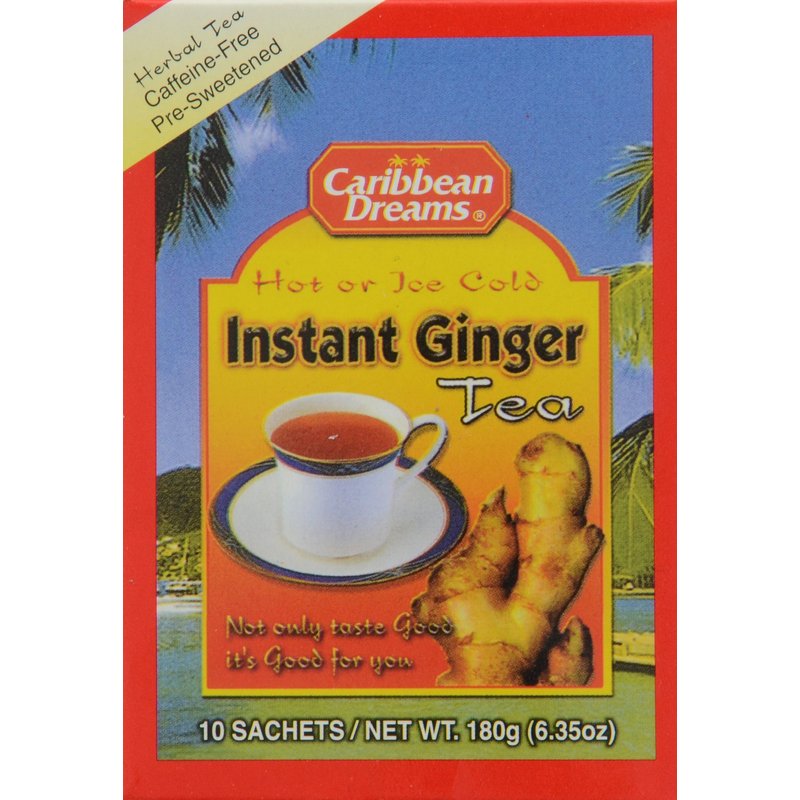 Caribbean Dreams Instant Ginger Tea, 100% Natural from Jamaica, Strong Taste and Aroma, 10 Sachets