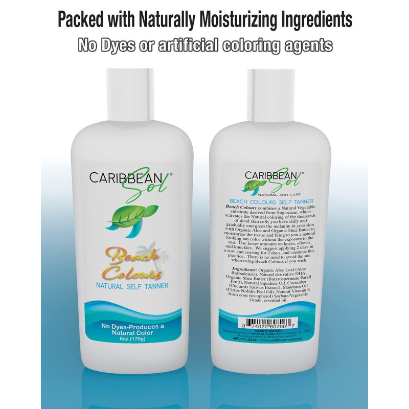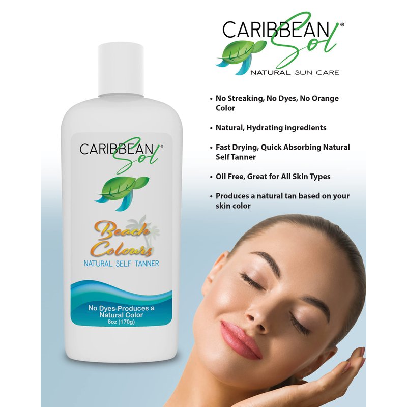 Caribbean Sol - Beach Colours Natural Self Tanning Lotion- Natural Eco-Friendly Sunless Tanner Skin Moisturizing Quick Self Tan Body Lotion 6oz.