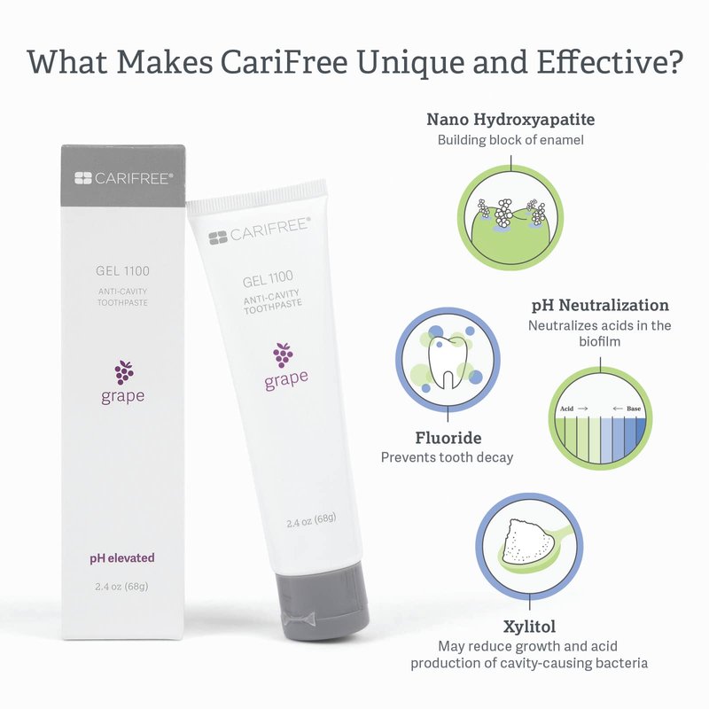 - [PATENTED pH+ TECHNOLOGY]: Studies suggest that tooth decay is a function of low pH. Maintaining an elevated or neutral pH balance helps to keep your tooth enamel and smile healthy. The CariFree Gel 1100 contains patented pH+ technology to elevate the pH in your mouth, keeping it balanced. U.S. Patent NO. 9,427,384 & 10,143,633.