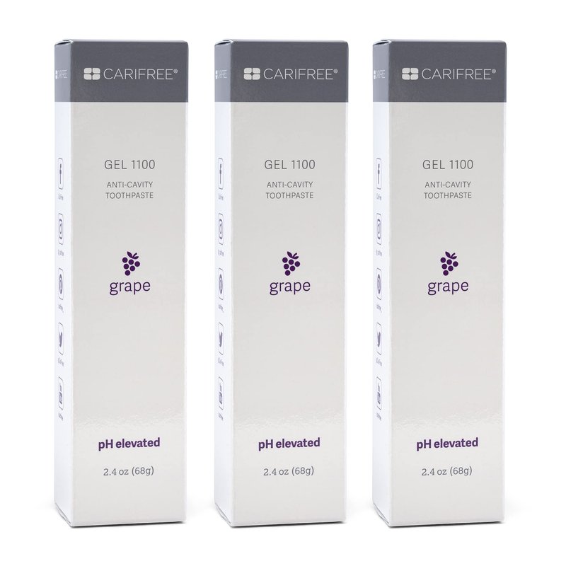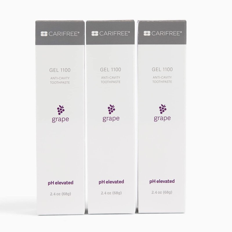 CariFree Gel 1100 (Grape): Anti-Cavity Fluoride Toothpaste, Cavity Prevention, Freshens Breath and Moistens Mouth, Dentist Recommended for Oral Care (3-Pack)