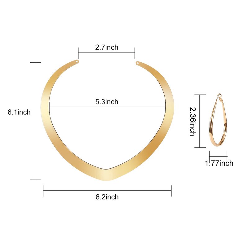 - Necklace and earrings are made of high quality alloy, necklace is open design and earrings are lightweight, easy to wear. Necklace diameter is 5.4”, earrings is 1.5*2.5 inch.
