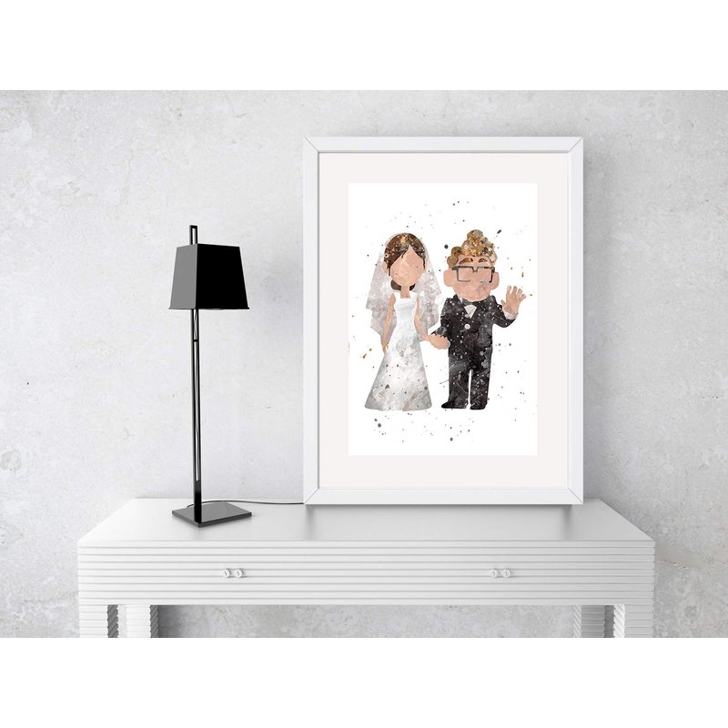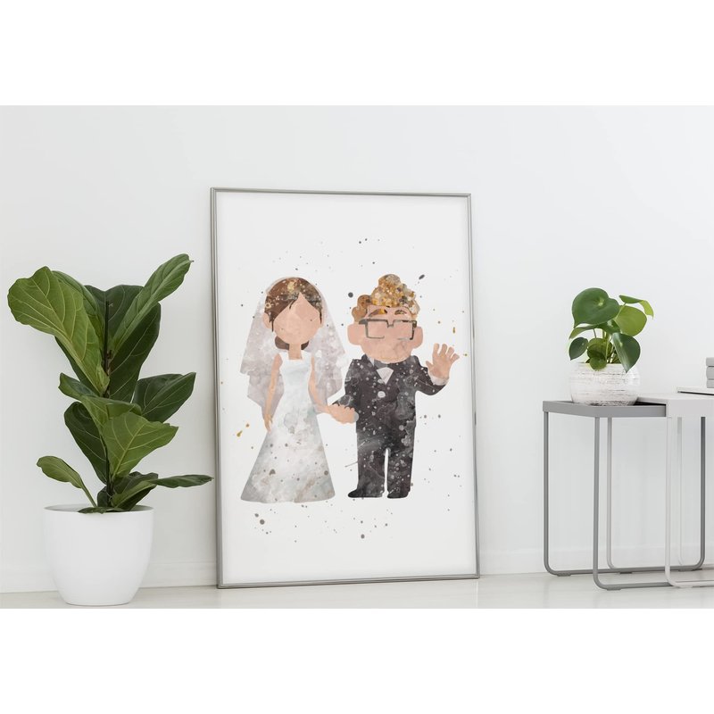 Carl and Ellie Wedding Married Prints, UP Watercolor, Nursery Wall Poster, Holiday Gift, Kids and Children Artworks, Digital Illustration Art Couple