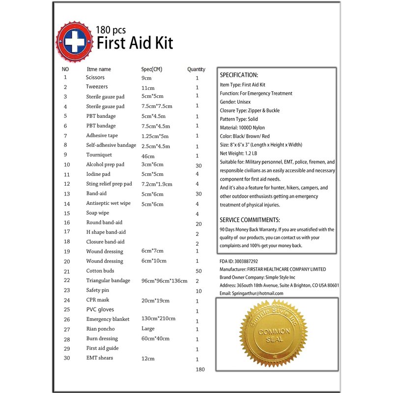 - ★INCLUDED: 180 piece essential medical supplies for backcountry expeditions. Be Desmond Thomas Doss saving your family and friends in an emergency.