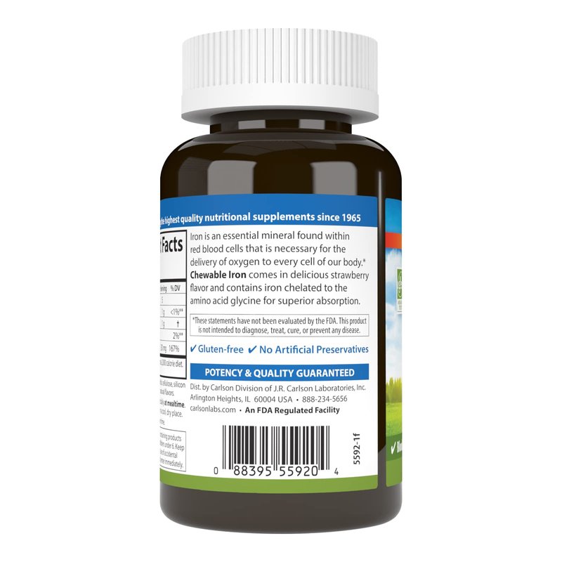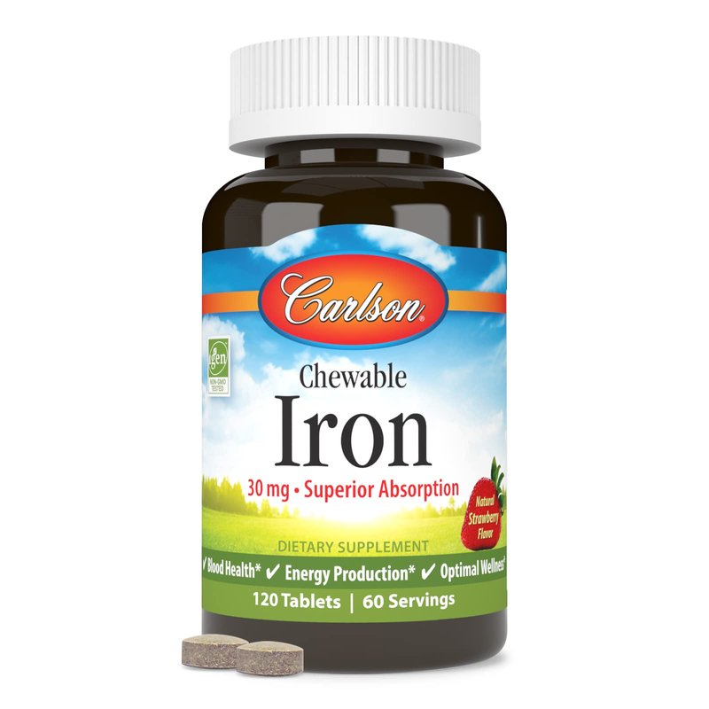 Carlson - Chewable Iron, 30 mg, Superior Absorption, Blood Health, Energy Production & Optimal Wellness, Chewable Iron Supplement for Women & Men, Natural Strawberry Flavor, 120 Tablets
