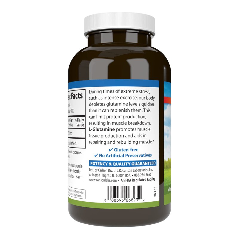 Carlson - L-Glutamine, Free-Form Amino Acid, 750 mg, Muscle Tissue Production, 300 Capsules