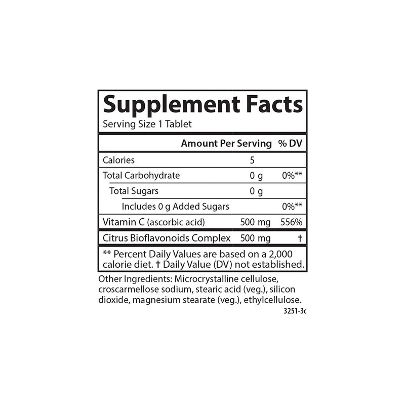 - Provides 500 mg of vitamin C and 500 mg of citrus bioflavonoids complex