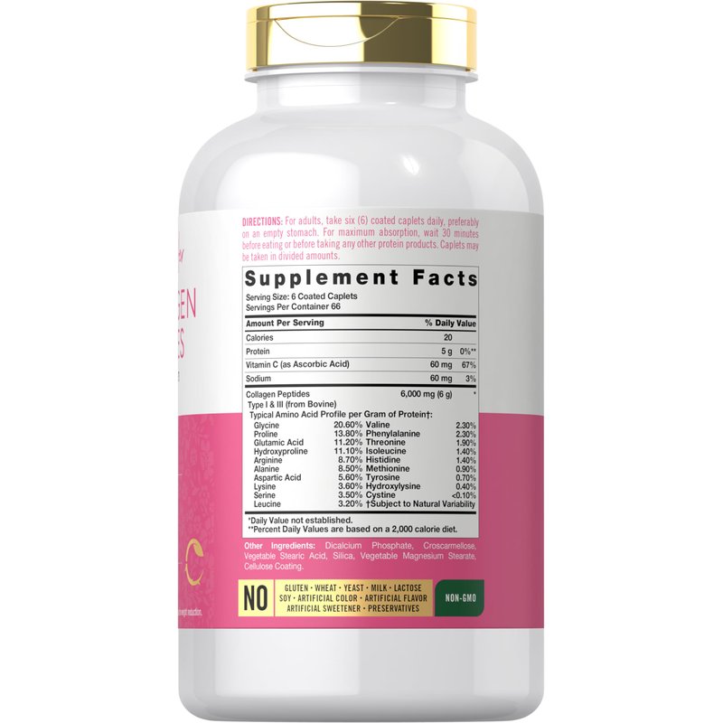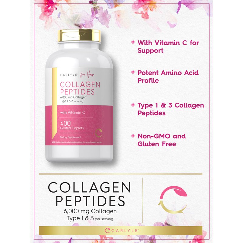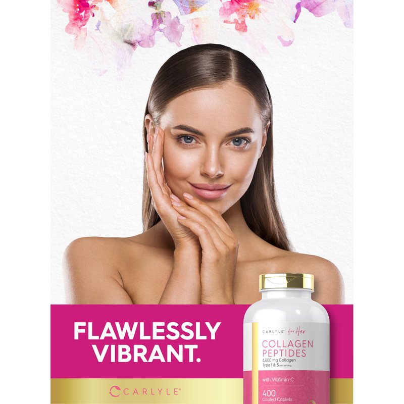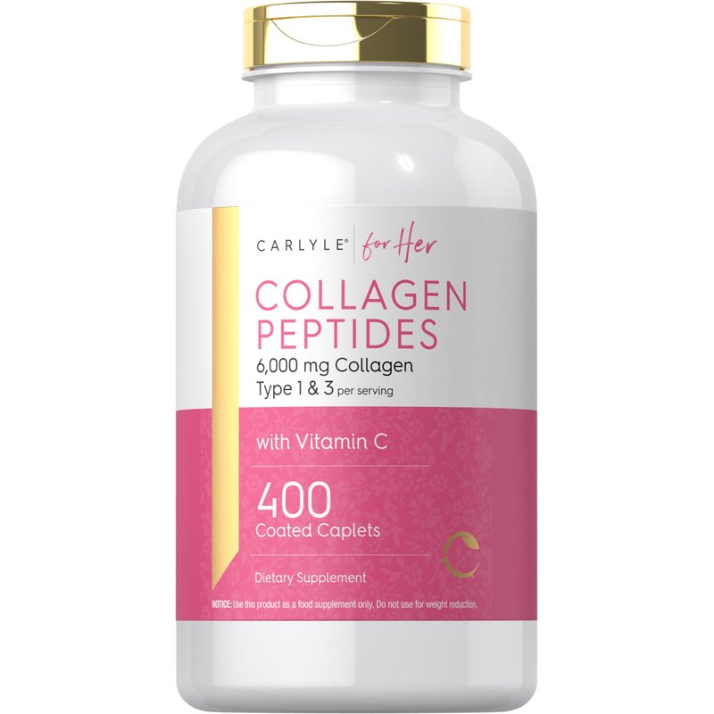 Carlyle Collagen Peptides 6000mg | 400 Caplets | with Vitamin C | Type 1 and 3 | Non-GMO, Gluten Free, Grass Fed Supplement
