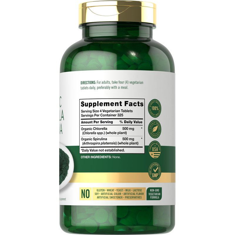 - VEGETARIAN FORMULA: Vegetarian tablets offer 500 mg Organic Chlorella and 500 mg Organic Spirulina