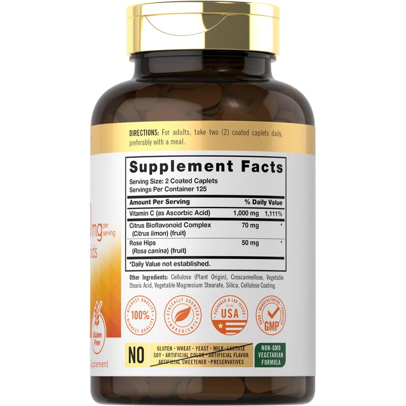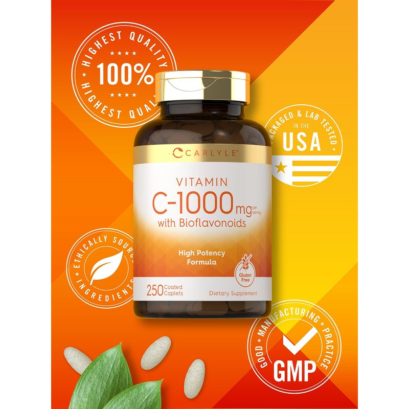 Supplementing with Vitamin C: Vitamin C, also known as Ascorbic Acid, is an essential nutrient naturally found in citrus fruits like oranges, grapefruit, and strawberries. You can now find Vitamin C in various forms such as capsules, liquid drops, gummies, caplets, softgels, chewable tablets, powder, pills, drink packets and topicals like body lotions, serums, oils, washes, moisturizers, gels, creams and more. Carlyle Vitamin C-1000mg: At Carlyle, our Vitamin C supplement provides 1,000 mg of this essential nutrient per serving, which is 1,111% of your daily value! In addition, it features a Citrus Bioflavonoid Complex and Rose Hips for added support. Our vegetarian formula is naturally gluten free and non-GMO, made with no artificial flavor or preservatives, making it a perfect choice for adult men and women everywhere! Carlyle Vitamin C-1000—Rooted in Wellness: Our expertise in sourcing the purest ingredients combined with advanced technologies makes us proud to deliver premium, honest supplements at the best value. Our Vitamin C-1000mg is a testament to our commitment to excellence, made with powerful ingredients rooted in wellness. Thanks for choosing us in your pursuit to healthy living!