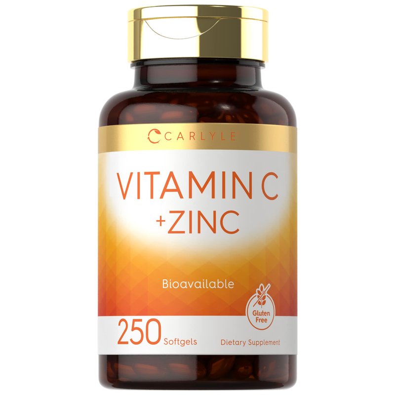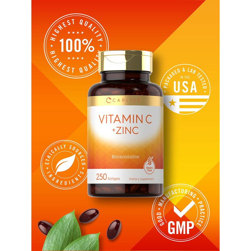 Carlyle Vitamin C with Zinc | 250 Softgels | Bioavailable | Ascorbic Acid | Zinc Oxide | Non-GMO and Gluten Free Supplement