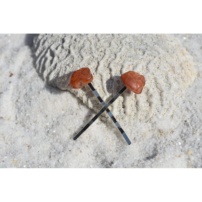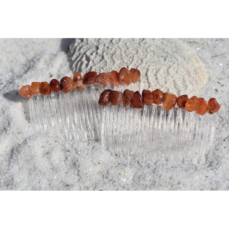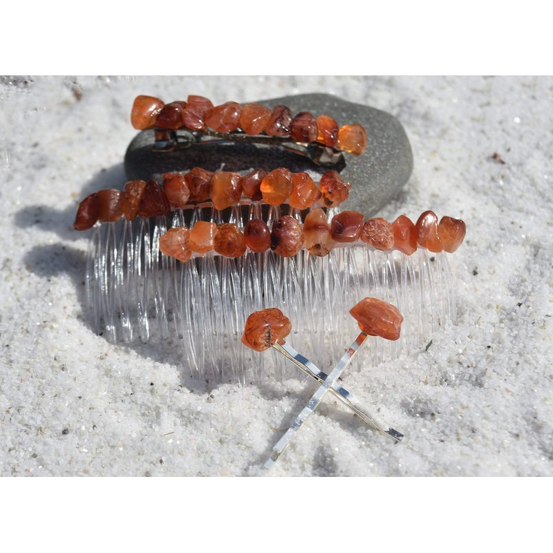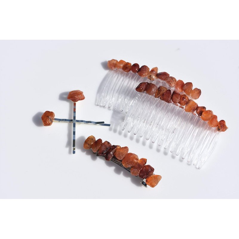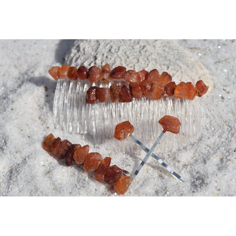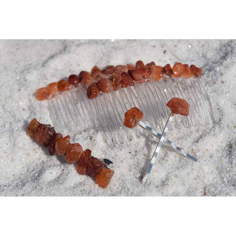 Carnelian Stone Hair Clip Set - Includes 2 Hair Combs, 1 60 mm French Barrette, 2 Hair Pins