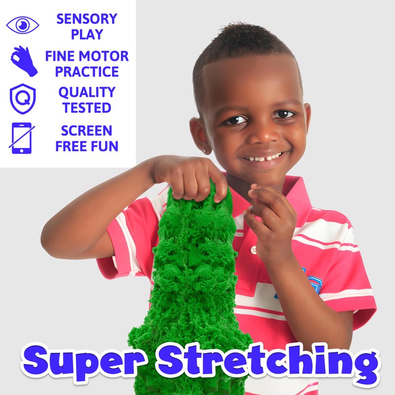 - NEW STRETCH SAND AND NO MESS: Squish, mix, mold, stretch, twist and squeeze, the new sensory sand performs these actions much better, so satisfying to touch. This sand playset is hassle-free and easier to clean up!