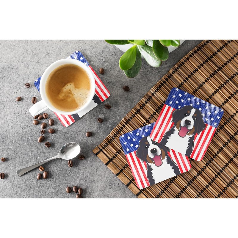 Carolines Treasures American Flag and Bernese Mountain Dog Foam Coaster Set of 4 3 1/2 x 3 1/2 multicolor