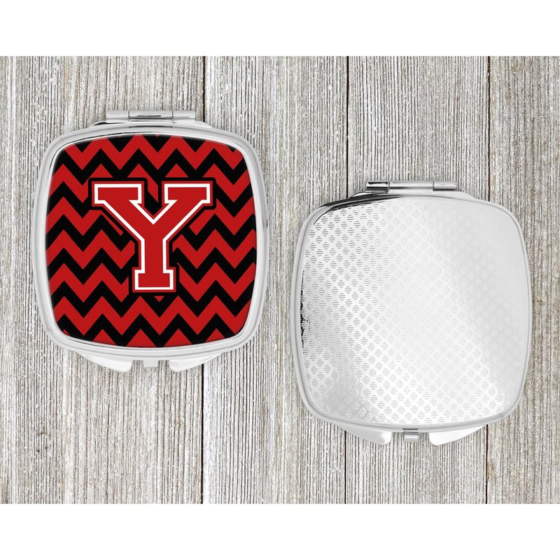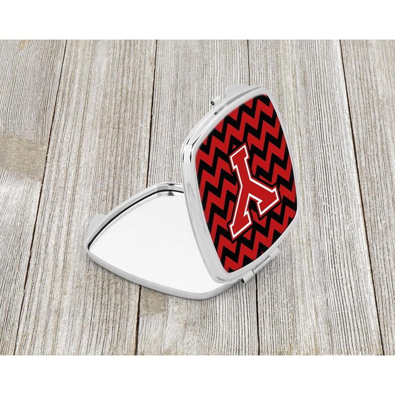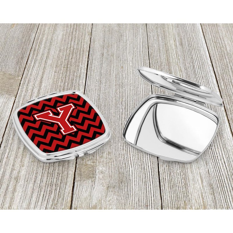 Caroline's Treasures CJ1047-YSCM Letter Y Chevron Black and Red Compact Mirror Decorative Travel Makeup Mirror for Women Girls Gifts Pocket Makeup Mirror Folding Handheld