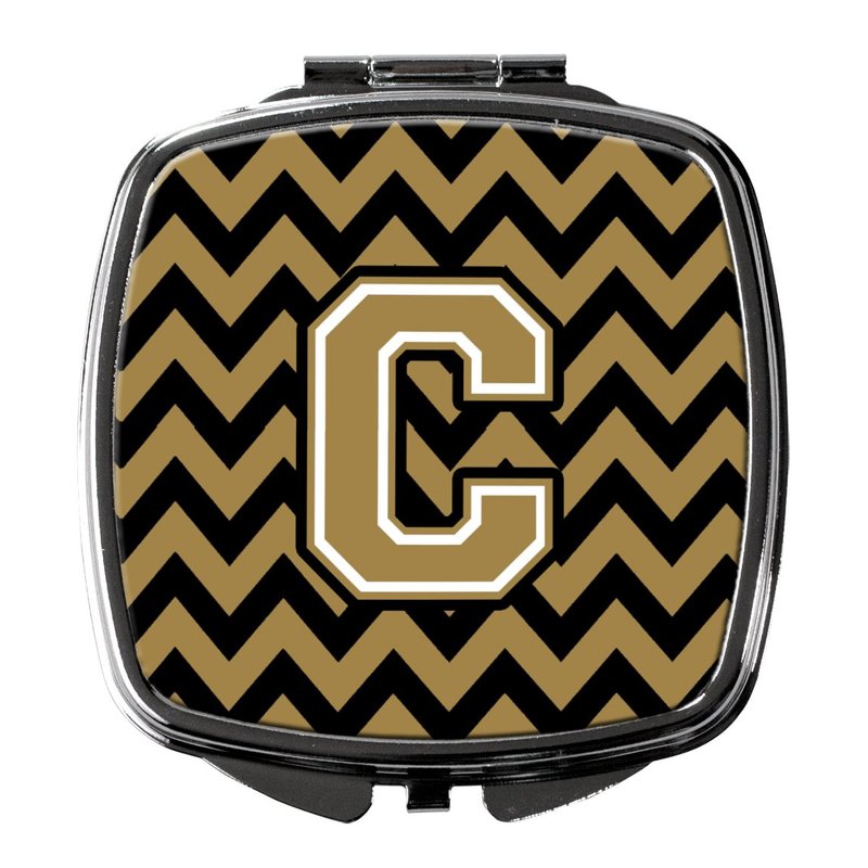 Caroline's Treasures CJ1050-CSCM Letter C Chevron Black and Gold Compact Mirror Decorative Travel Makeup Mirror for Women Girls Gifts Pocket Makeup Mirror Folding Handheld